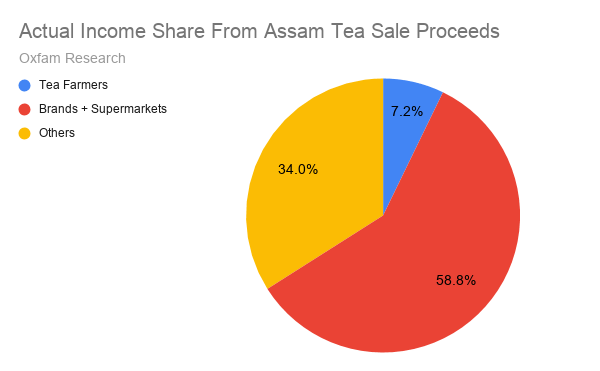 ในต้นศตวรรษที่ 19 อังกฤษเริ่มขยายการปลูกชาในอินเดีย พื้นที่เพาะปลูกชา เช่น อัสสัม ดาร์จีลิ่ง และนิลคีรี ถูกพัฒนาให้กลายเป็นแหล่งผลิตสำคัญของชาเพื่อการส่งออก แต่กระบวนการนี้กลับส่งผลกระทบต่อชีวิตของคนพื้นเมืองอย่างรุนแรง กล่าวคือ การทำงานในไร่ชามีลักษณะเป็นแรงงานหนักที่ต้องใช้ความพยายามทั้งทางร่างกายและจิตใจ แรงงานหญิงมักได้รับมอบหมายให้เก็บยอดชาในพื้นที่ลาดชันเป็นเวลาหลายชั่วโมงต่อวัน ภายใต้แสงแดดที่ร้อนแรง และต้องเร่งทำงานให้ทันตามเป้าหมายที่กำหนด ส่วนแรงงานชายมักทำหน้าที่เตรียมพื้นที่เพาะปลูก ดูแลต้นชา หรือทำงานในกระบวนการแปรรูปชาในโรงงานใกล้ไร่ชา การทำงานเหล่านี้ดำเนินไปในสภาพที่ไม่ปลอดภัย และไม่มีมาตรการป้องกันสุขภาพที่เหมาะสม โดยที่ค่าจ้างที่แรงงานเหล่านี้ได้รับมักต่ำมาก จนไม่เพียงพอต่อการดำรงชีวิตประจำวัน บ่อยครั้งบริษัทจ่ายค่าจ้างในรูปของสินค้าพื้นฐานแทนเงินสด เช่น ข้าวหรือเกลือ ทำให้แรงงานต้องพึ่งพานายจ้างเพื่อการยังชีพ การควบคุมค่าแรงเช่นนี้สร้างระบบที่คนงานไม่สามารถหลุดพ้นจากความยากจนได้ อีกทั้งยังส่งเสริมความไม่เท่าเทียมในโครงสร้างเศรษฐกิจ หลายคนที่ทำงานในไร่ชาไม่ได้เป็นแรงงานสมัครใจ แต่ถูกบังคับหรือล่อลวงโดยนายหน้า บ่อยครั้งพวกเขาถูกพาไปยังไร่ชาในพื้นที่ห่างไกลและไม่สามารถเดินทางกลับบ้านได้ บางกรณีแรงงานเหล่านี้ถูกใช้งานภายใต้สภาพที่ใกล้เคียงกับการเป็นทาส เช่น การถูกจำกัดเสรีภาพหรือการข่มขู่จากผู้ดูแลแรงงาน